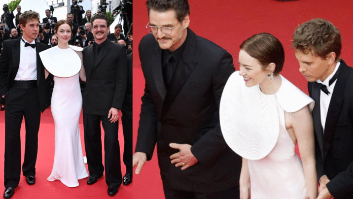 Emma Stone protagonizó uno de los momentos más comentados del Festival de Cannes, y no fue solo por su actuación. Mientras caminaba por la alfombra roja junto a Pedro Pascal y Austin Butler para presentar Eddington, una abeja voló cerca de su rostro, provocándole un visible susto. Pascal reaccionó rápidamente para espantar al insecto, desatando risas y viralidad en redes.