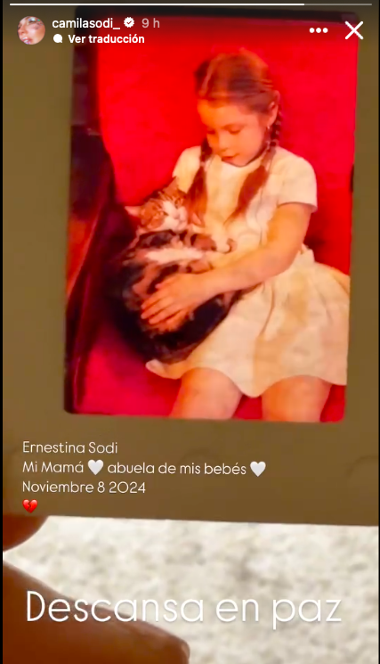 Camila Sodi, hija de Ernestina, fue quien informó sobre la pérdida a través de un emotivo mensaje en Instagram: “Ernestina Sodi, mi mamá, abuela de mis bebés. Noviembre 8, 2024. Descansa en paz.” Con este mensaje, la actriz y cantante despidió públicamente a su madre, generando una ola de condolencias en redes sociales.