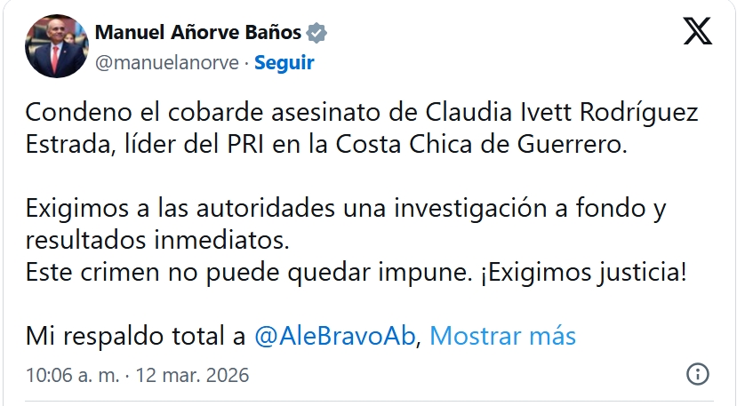 El senador Manuel Añorve Baños confirmó el asesinato y pidió una investigación inmediata. Señaló que las autoridades deben castigar a los responsables.