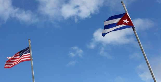 Fotografías de las banderas de Estados Unidos Y Cuba una al lado de la otra – créditos a quien correspondan.