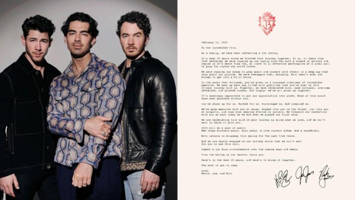 Los Jonas Brothers han dejado a sus seguidores con la emoción a flor de piel, luego de un sorpresivo anuncio en sus redes sociales que no solo trajo nostalgia, sino también una lluvia de proyectos para este 2025. A través de una carta que reflexionaba sobre sus dos décadas de carrera, muchos fans temieron que la banda se disolviera nuevamente. Sin embargo, lejos de ser una despedida, este mensaje solo anticipa una agenda cargada de nuevos lanzamientos y emocionantes sorpresas.